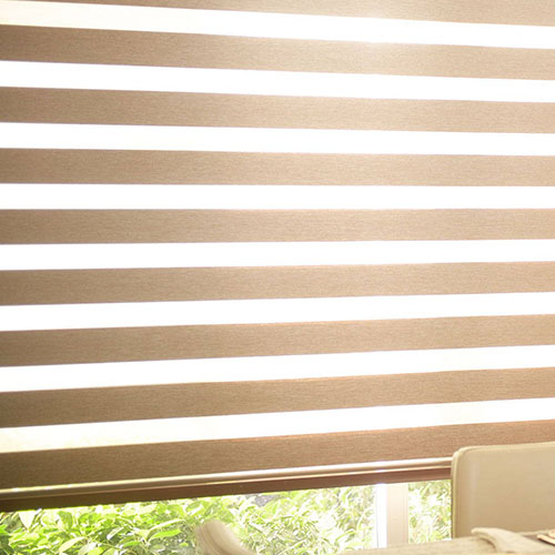 It is two layers of cloth, each layer is divided into horizontal slices slice after the other connected to each other A light layer of transparent chiffon and a heavy layer of polyester .. plain, embossed, printed or embroidered. The curtain is raised horizontally inside a case of electrostatic painted aluminum and covered with a slice of fabric. The curtain moves up through a thread of silk inlaid with PVC beads, so it is difficult to cut easily. Zebra features It is characterized by its streamlined shape, modern colors, printed woodwork, children's toys and plain, so it is used in all rooms of the house in proportion to the room situation (Bedrooms, children's rooms, offices and kitchen) Full control over the darkening of the room lighting easily without raising the curtain Saving room size due to its small size Easy to clean in place and easy to disassemble and install through steel clips without the need for an installation technician
